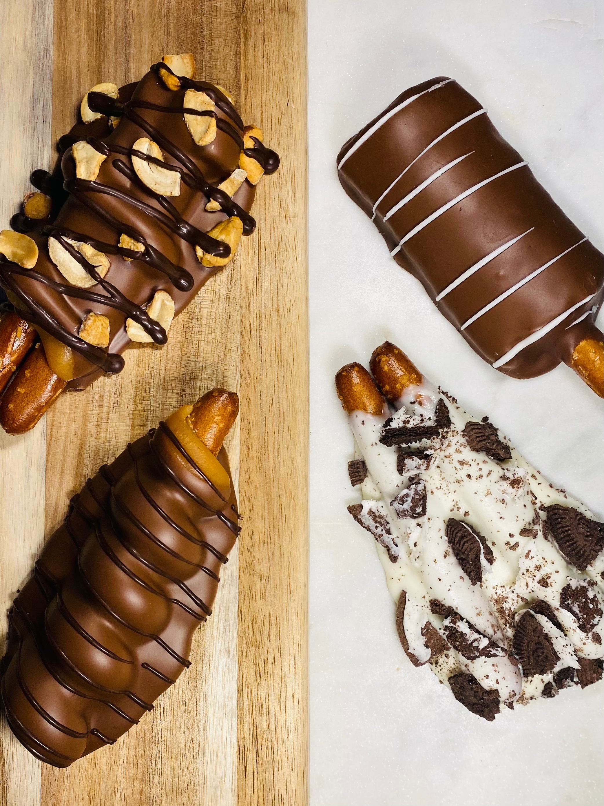 We believe that using the finest ingredients creates exceptional pretzels. Pretzels baked fresh are enrobed in luscious dark chocolate, caramel, and crushed coffee beans, all combined to create the perfect luscious coating. Mesmerizing flavors result from an unparalleled combination.
