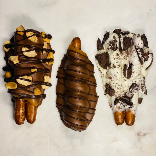 GF Cashew Caramel Turtle: This pretzel is a gluten-free delight that artfully combines buttery cashews, smooth caramel, and decadent chocolate into a harmonious treat for all to enjoy. With every bite, relish the perfect balance of flavors and textures, redefining indulgence without compromising dietary preferences.